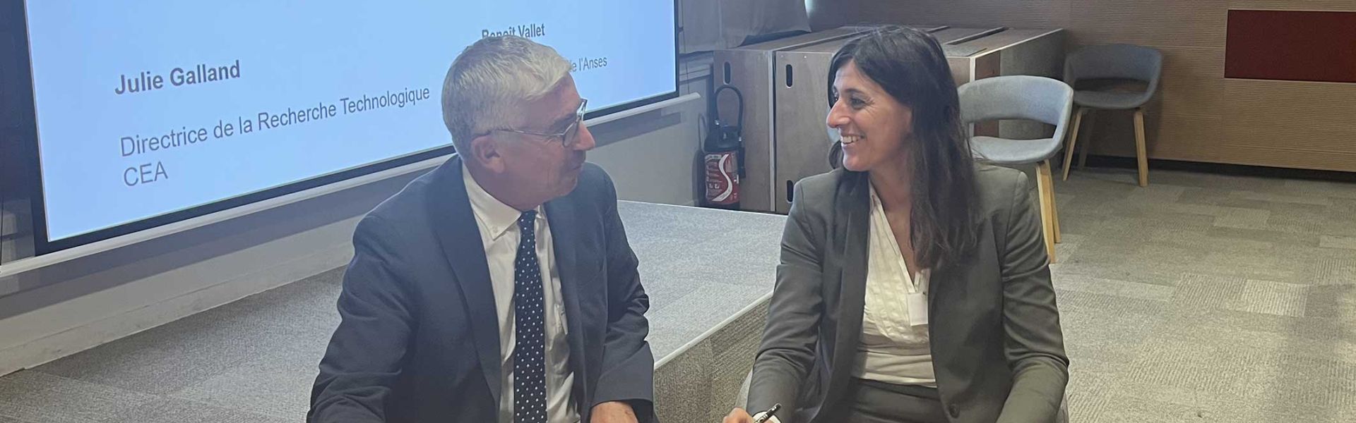 On 10 October 2023, Benoit Vallet, Director General of ANSES, and Julie Galland, Director General for Technology Research at the French Alternative Energies and Atomic Energy Commission (CEA), renewed the agreement between the two organisations. The aim of this agreement is to strengthen the role of innovative technologies in the detection, control, and prevention of health risks in animals, plants, and food.