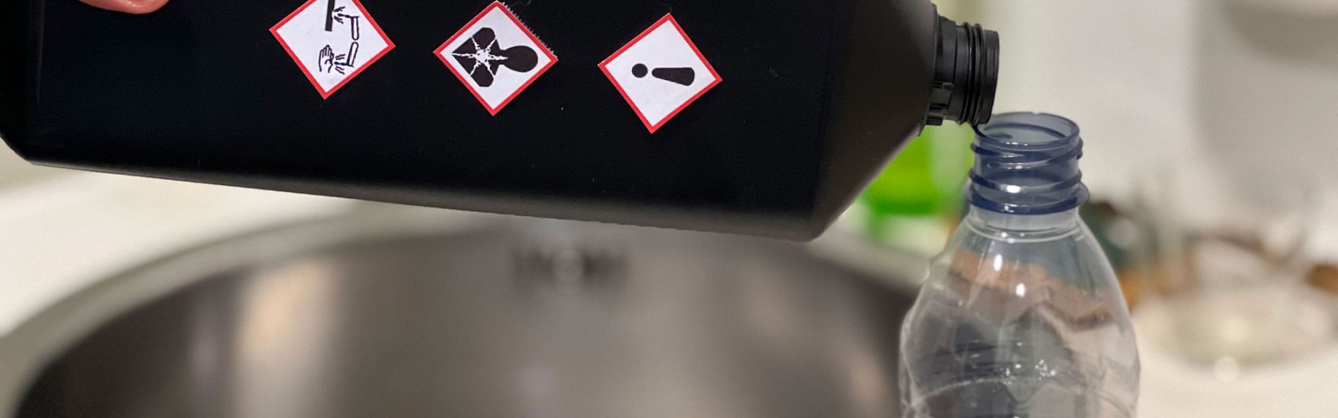 Decanting is the act of transferring a product into a container that is different from its original packaging and is not intended for this purpose. For example, when a floor cleaning product or bleach is transferred to a plastic bottle, it is said to have been decanted. In the absence of a label and hazard symbols, the new container no longer shows any information about the nature of its contents or, above all, about the potential associated risks and precautions for use. More often than not, it also lacks the safety cap required for certain products.