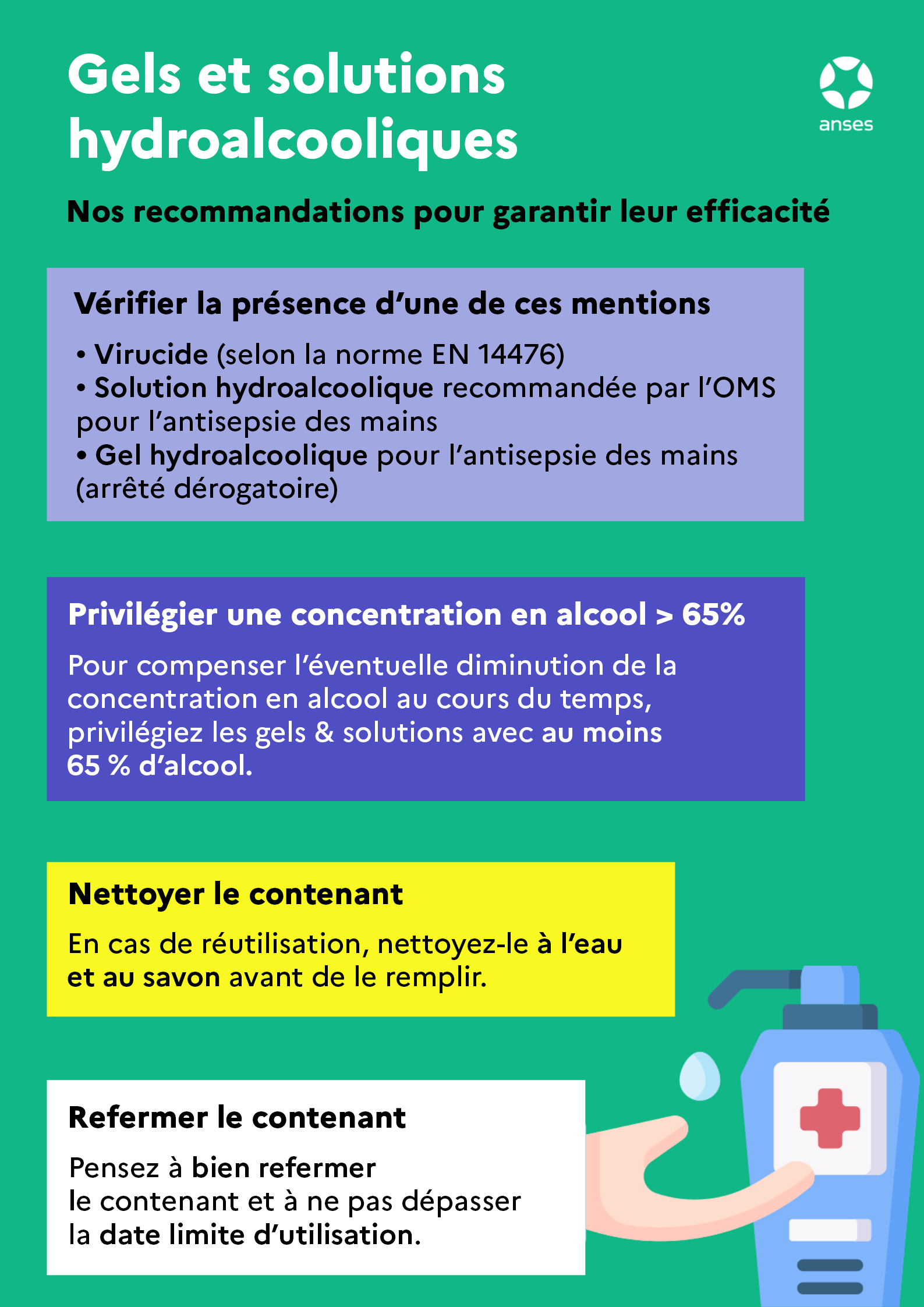28/06/2021 Gels et solutions hydroalcooliques, nos recommandations pour garantir leur efficacité Partager Partager sur Twitter Partager sur Facebook Partager sur Linkedin Fermer Copier le lien Lien copié ! Partager par email Imprimer Fichier Gels_solutions_hydroalcooliques.pdf (2.96 Ko PDF) Type Fiche technique Date signature Lundi, 28 juin, 2021 Date publication prévue Lundi, 28 juin, 2021 Date visa DG Lundi, 28 juin, 2021 Date de mise en ligne Lundi, 28 juin, 2021