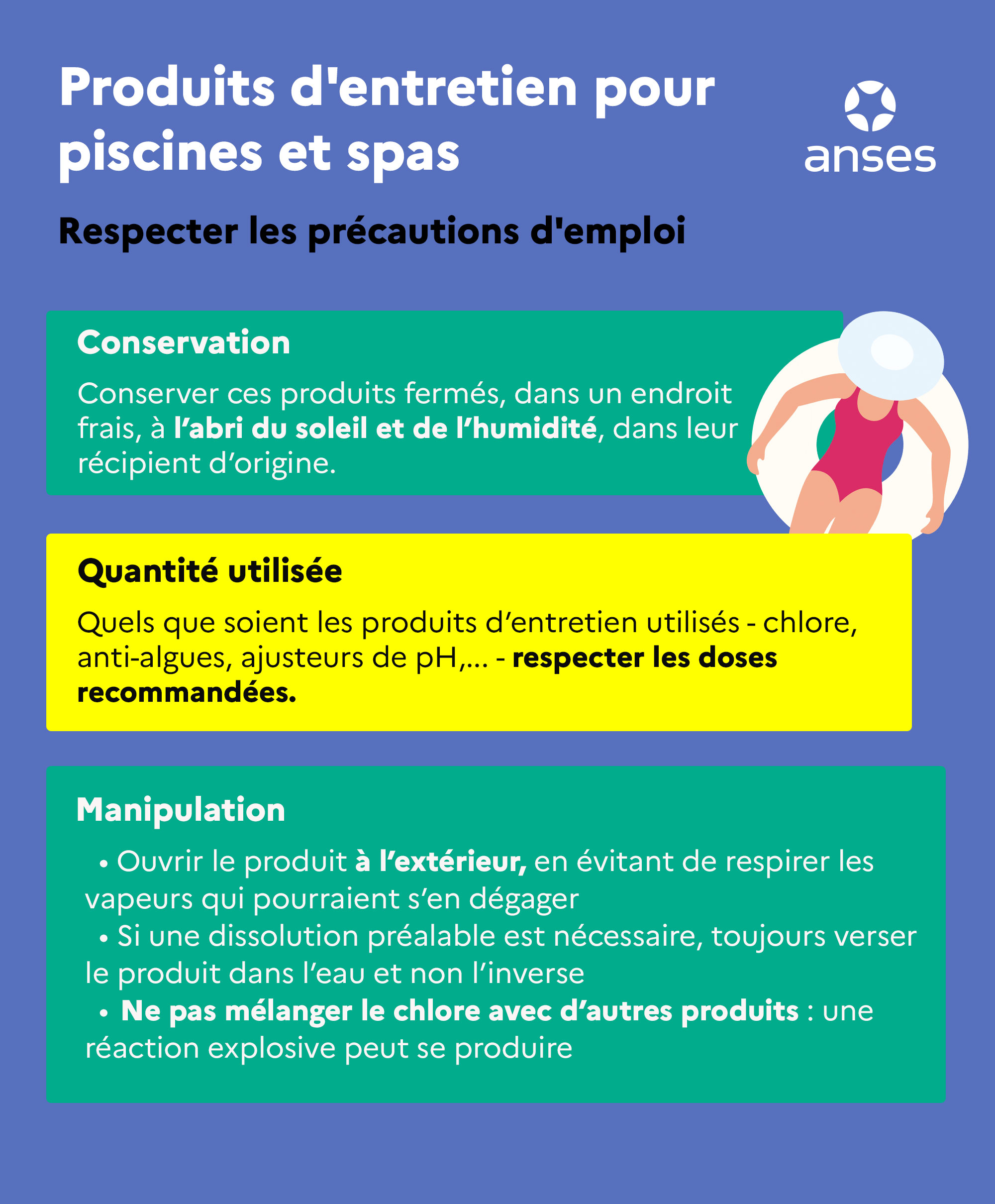 Produits d'entretien pour piscines et spa : respecter les précautions d'emploi Partager Partager sur Twitter Partager sur Facebook Partager sur Linkedin Fermer Copier le lien Lien copié ! Partager par email Imprimer > Télécharger notre infographie Produits d'entretien pour piscine et spa (PDF)